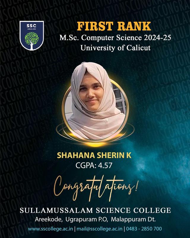My time at Sullamussalam Science College, Areacode, laid a robust foundation for my academic journey. Receiving the Jabsir-Ali Foundation scholarship for topping B.Sc Mathematics and utilizing the college library's extensive resources were pivotal in shaping my academic career. The exceptional guidance and support from faculty members enabled me to achieve significant milestones like securing the PMRF fellowship, gaining admission to TIFR Mumbai, and excelling in exams such as NBHM, GATE, and CSIR-JRF, along with achieving the second rank in M.Sc Mathematics at NIT Calicut.