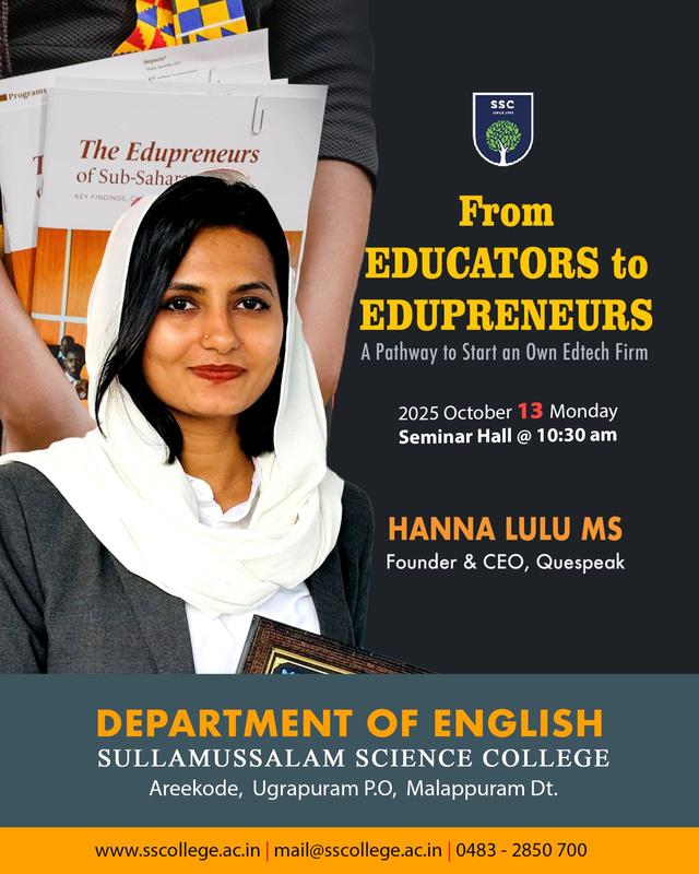 The PG Department of English at Sullamussalam Science College, Areekode, organized an invited talk titled "World of O.V. Vijayan: Poetics, Politics, and Ethics" on 6th November 2024. This session provided an insightful exploration of the works of O.V. Vijayan, one of Kerala’s most celebrated writers, focusing on the intersections of his literary poetics, political ideologies, and ethical concerns.
